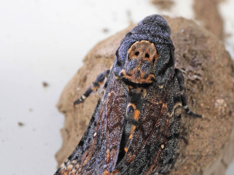 er trägt ein Totenkopf-Symbol wie ein Hell´s Angel: ein Totenkopfschwärmer! ...mehr über unsere → Totenkopfschwärmer im Glemstal |