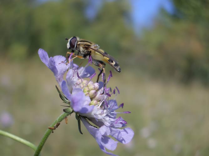 eine Schwebfliege auf Wiesenwitwenblume ...mehr über unsere → Schwebfliegen im Glemstal → Kardengewächse im Glemstal |