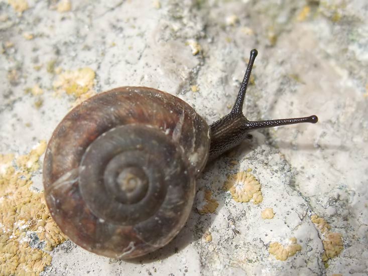 auf dem Fels: Schwarze Baumschnecke (Arianta Arbustorum) ...mehr über unsere wildlebenden → Schnecken im Glemstal |