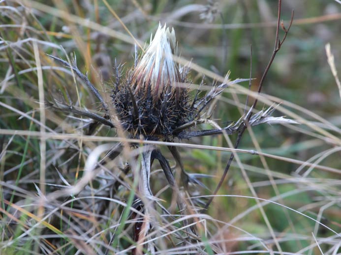 | eine Silberdistel (Carlina acaulis) ist noch geschlossen ...mehr über unsere → Korbblütler im Glemstal |