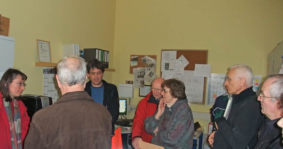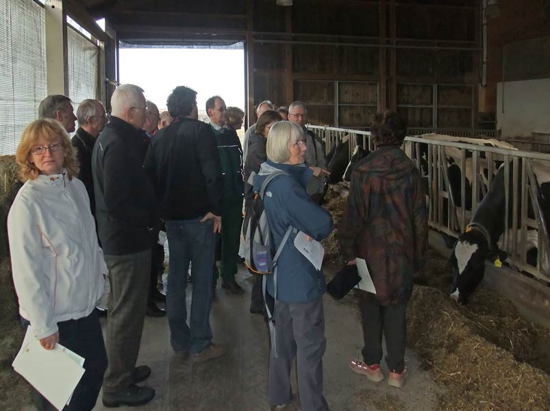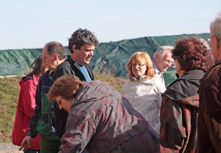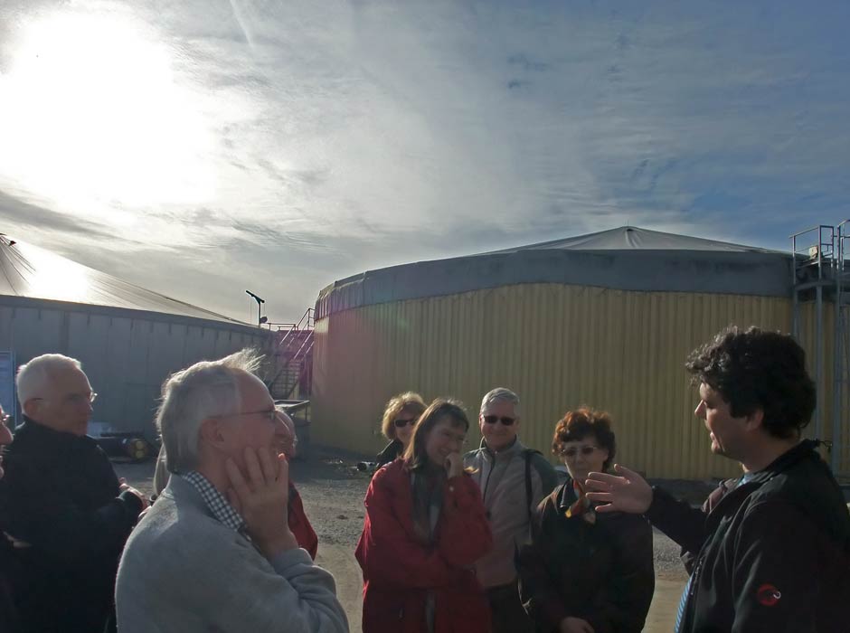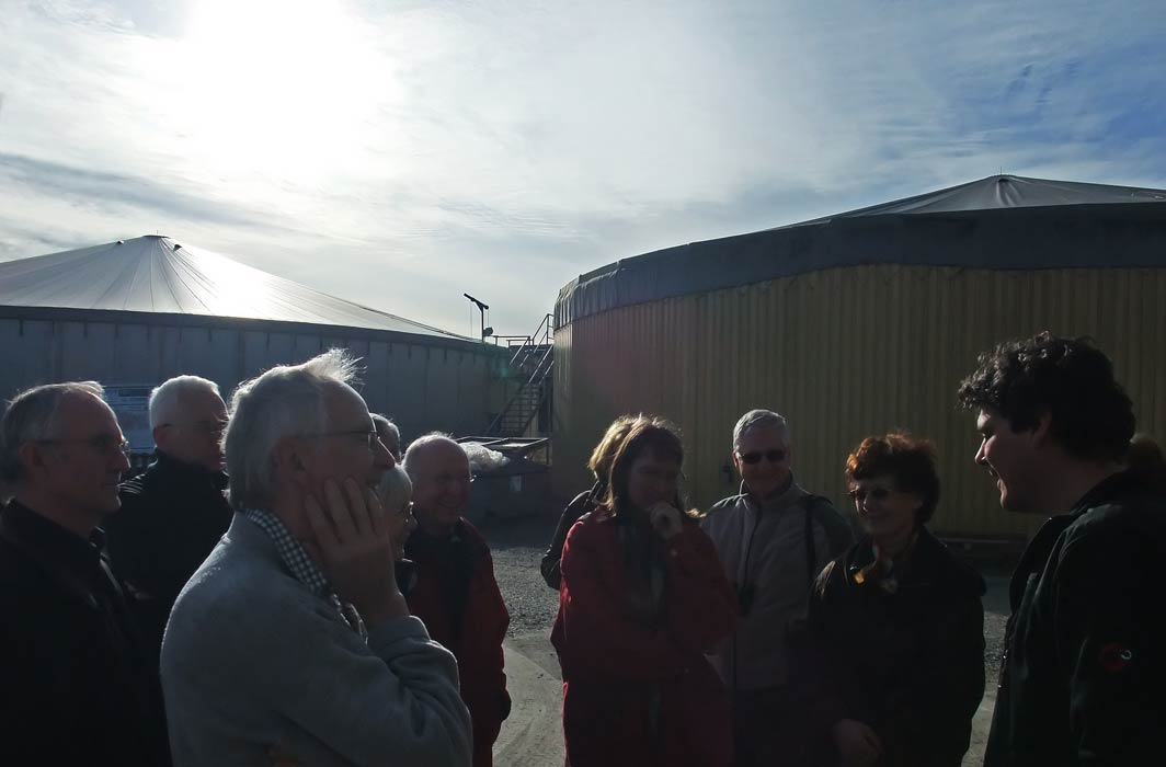 Ulrich Ramsaier (rechts) erläutert den Fermenter (hinten rechts) ... | ... und den Gärrest-Speicher (hinten links) |
