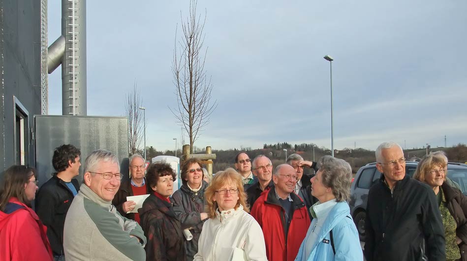 Vor der neuen Holzhackschnitzelheizung in Hemmingen. Hinten die Nippenburg.