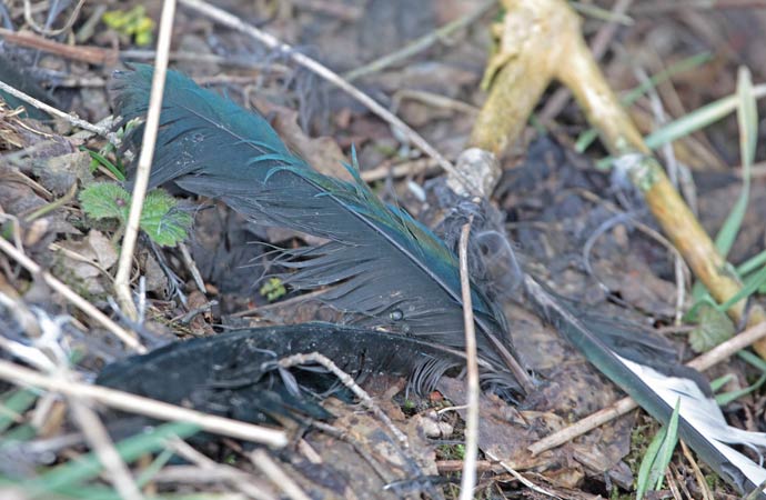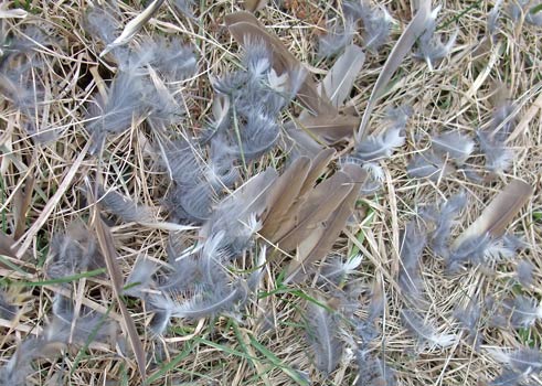 Ein Vogel wurde hier gerupft Aber von wem? |