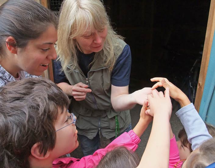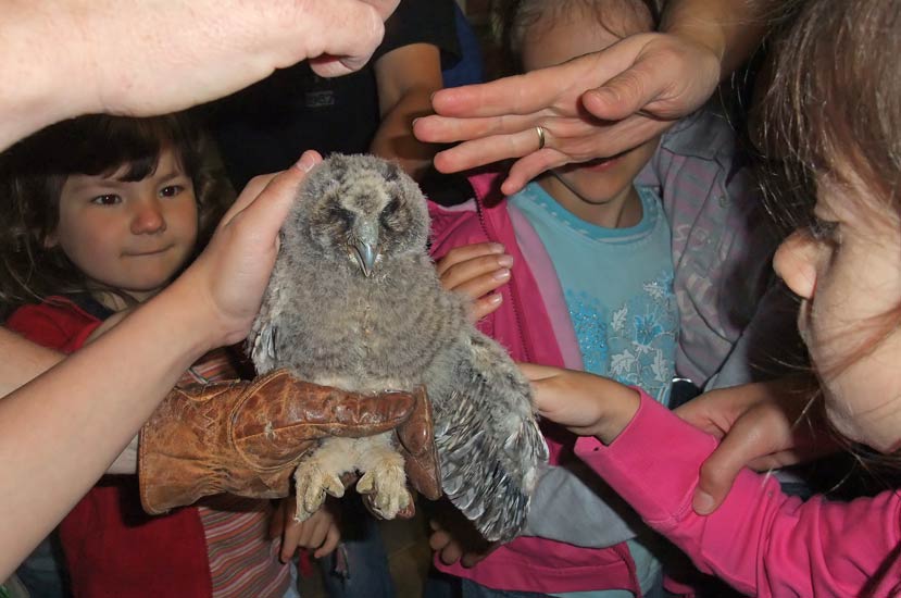 Frau Wacker von der Greifvogelpflegestation mit dem NABU