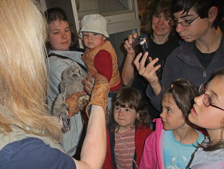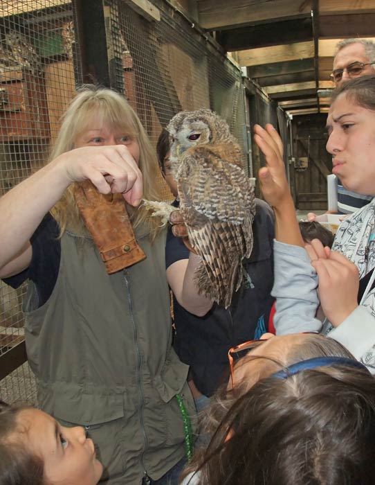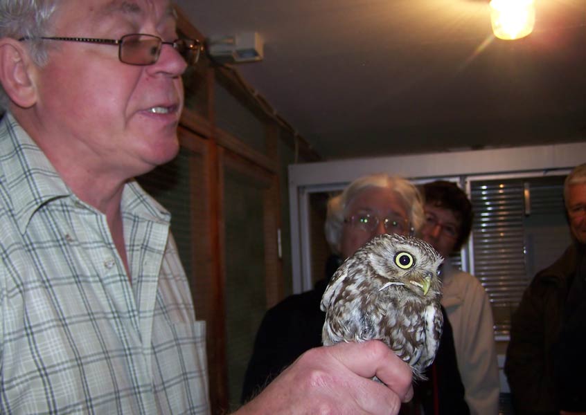 NABU Schwieberdingen-Hemmingen in der Greifvogelpflegestation mit Frau Wacker mit einer Waldohreule ... über unsere wildlebenden → Waldohreulen im Glemstal |