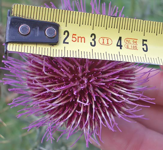 Eine riesige Blüte: 5,5 cm breit Wollkopf-Kratzdistel (Cirsium eriophorum) ...mehr über unsere → Korbblütengewächse im Glemstal |