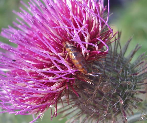 Wollkopf-Kratzdistel (Cirsium eriophorum) mit Ohrwurm x (Forficula auricularia) und Krabbenspinne x ...mehr über unsere → Korbblütengewächse im Glemstal → Ohrwürmer-im-Glemstal → Spinnenarten im Glemstal → Heide I im Siegental |