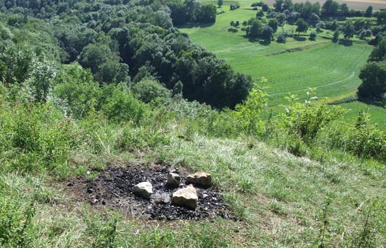 wilde Feuerstelle genau im kleinen Trockenrasen mit der besonderen Botanik auf dem Felskopf vom Siegfriedsfels |