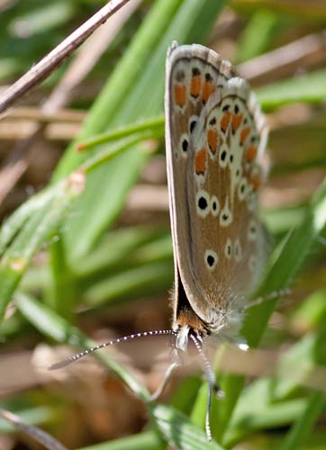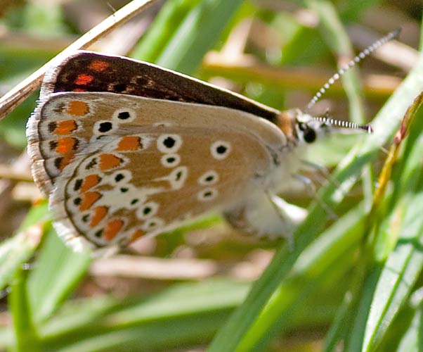 ein weibl. kleiner Sonnenröschen-Bläuling (Polyommatus (Aricia) agestis) ...mehr über unsere → Bläulinge im Glemstal → Siegfriedsfelsen in Markgröningen |