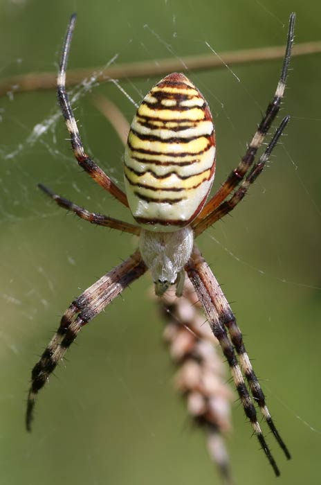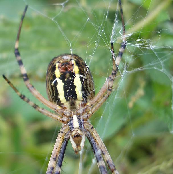Wespenspinne (Argiope bruennichi) ist recht bunt ...mehr über unsere → Spinnen im Glemstal → Siegfriedsfelsen in Markgröningen |