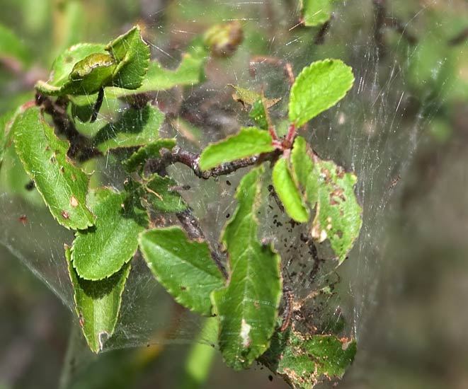 | Schlehe mit blauen Beeren und einem Gespinst | (Prunus spinosa) | ||