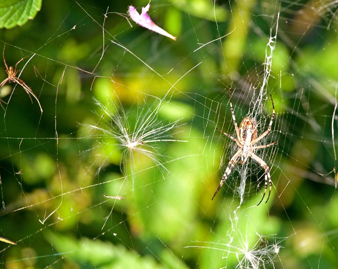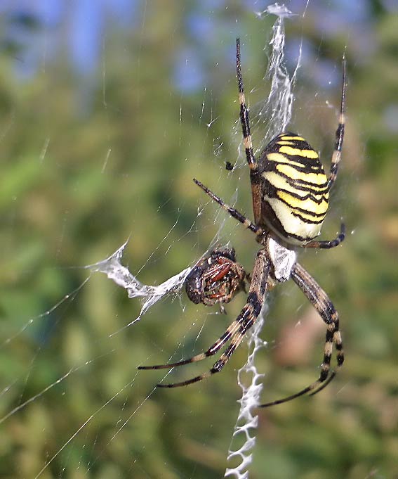Wespenspinnen (Argiope bruennichi) im gleichen Netz: rechts die Dame (von unten), links der Herr (von unten) ...mehr über unsere → Spinnen im Glemstal → Naturräume im Glemstal bei Ditzingen |