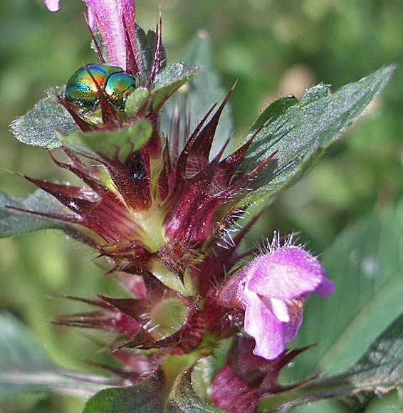 Hohlzahn (Galeopsis sp.) mit Blattkäfer (Chrysolina graminis) ...mehr über unsere → Käferarten im Glemstal → Naturräume im Glemstal bei Hemmingen |