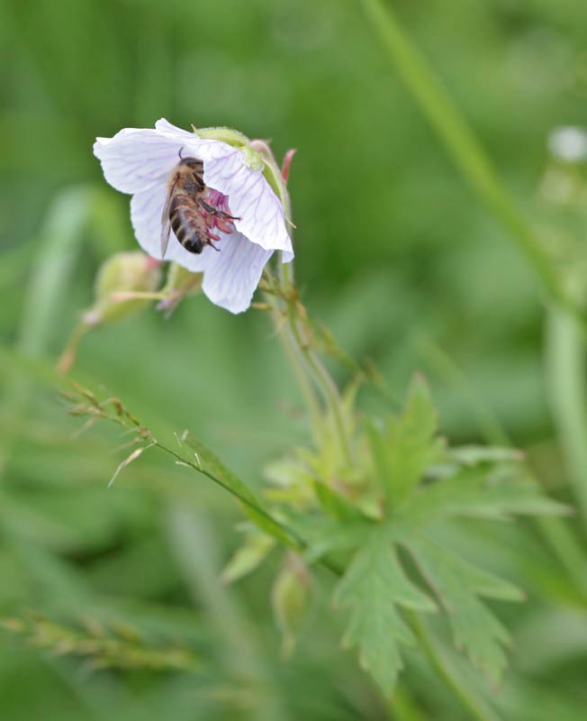 heller Wiesen-Storchschnabel mit Honigbiene ...mehr über unsere → Storchschnabelgewächse im Glemstal → Wildbienen im Glemstal → Naturräume im Glemstal bei Hemmingen |