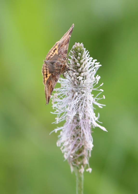 aus der Familie der Eulenfalter (Noctuidae) Sitzt hier auf Plantago media (Mittlerer Wegerich) ...mehr über unsere → Eulenfalter im Glemstal → Wegerichgewächse im Glemstal → Naturräume im Glemstal bei Hemmingen |