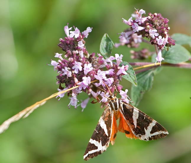 russischer Bär (Euplagia quatripunctaria) auf Dost (Origanum vulgare) ...mehr über unsere → Bärenspinner im Glemstal → Lippenblütengewächse im Glemstal → Siegfriedsfelsen in Markgröningen |