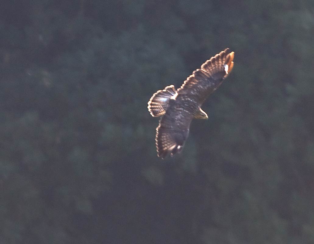 Nach dem Abendessen haben Hilde und ich noch einen Abendspaziergang gemacht. Auf die Höhe bei Schwieberdingen Richtung Vöhingen, damit wir noch etwas Sonne abbekommen. Es ist windstill und plötzlich sehen wir den Adler ankommen. Er flog praktisch direkt über uns hinweg in relativ geringer Höhe und er flog in sehr gerader Richtung West-Südwest weiter in Richtung Hemmingen. Das Licht war gerade noch ausreichend für diese Fotos im letzten Tageslicht. Von der Größe her wirkte er etwa wie ein Graureiher.