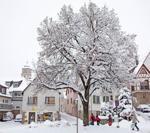 eine Dorflinde am Mantes-La-Ville-Platz ...mehr über unsere → Baumarten im Glemstal |