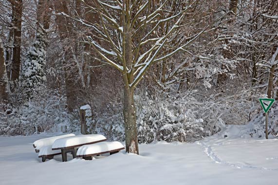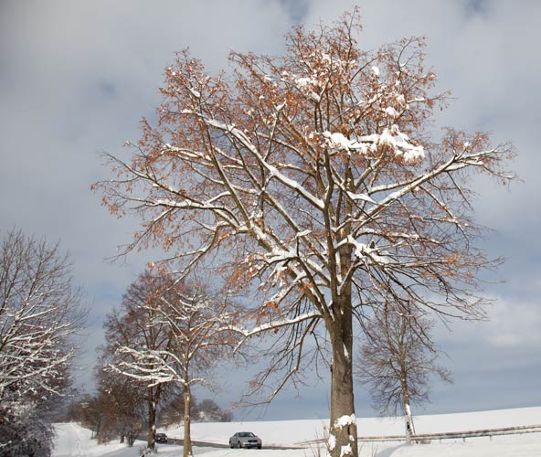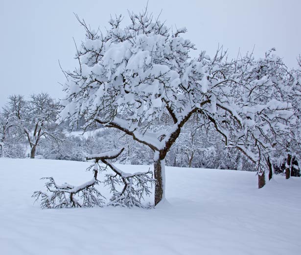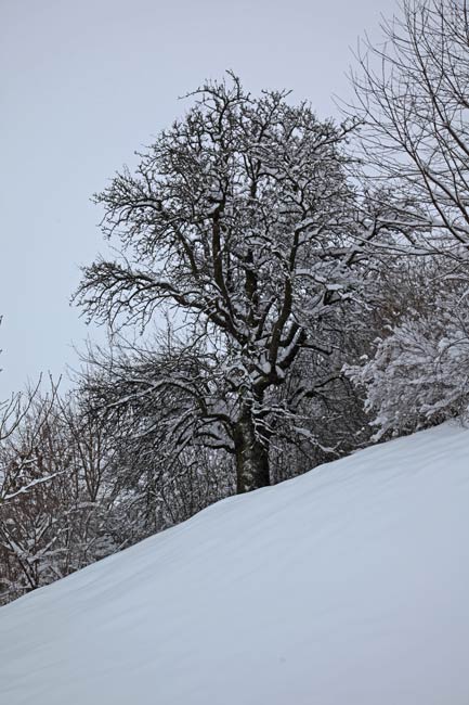 | Winterstimmung mit Schnee | ein auffällig großer Baum auf der Hülbe | fotogener Schneebruch |