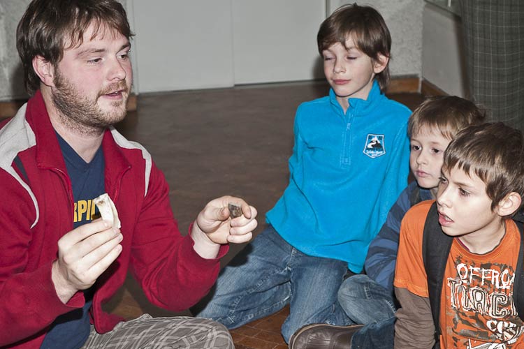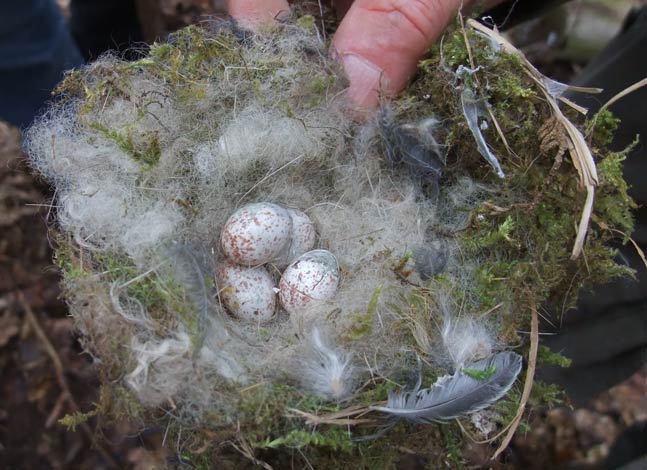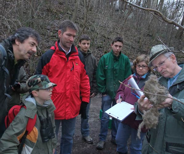 Wolfram Bock analysiert ein Nest aus einem Nistkasten |