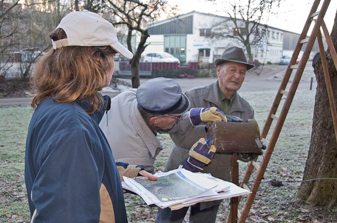 Günter Hönes übergibt das Nistkasten-Gebiet "unteres Glemstal" an Gerd Hickel
