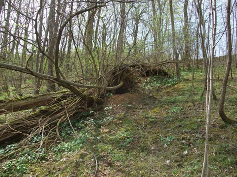 Sieht aus wie ein Dachsbau In einem steilen Hangwald unterhalb der Erddeponie ... mehr über unseren → Dachs im Glemstal |