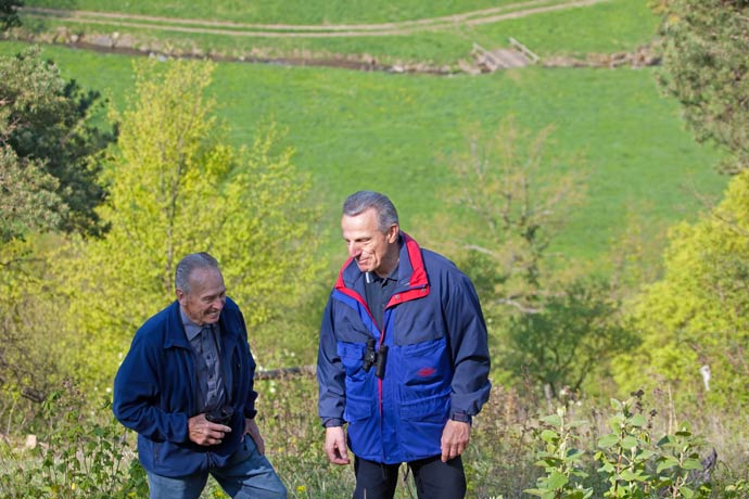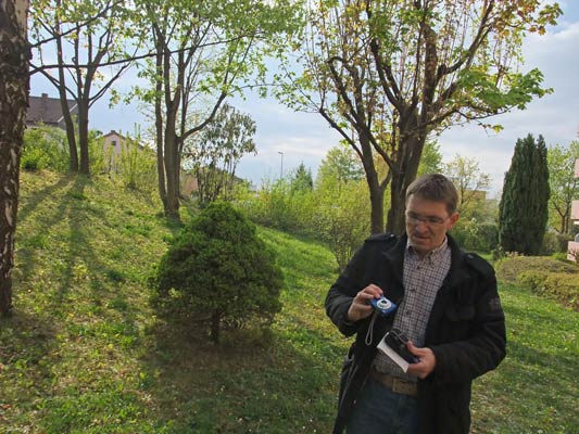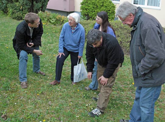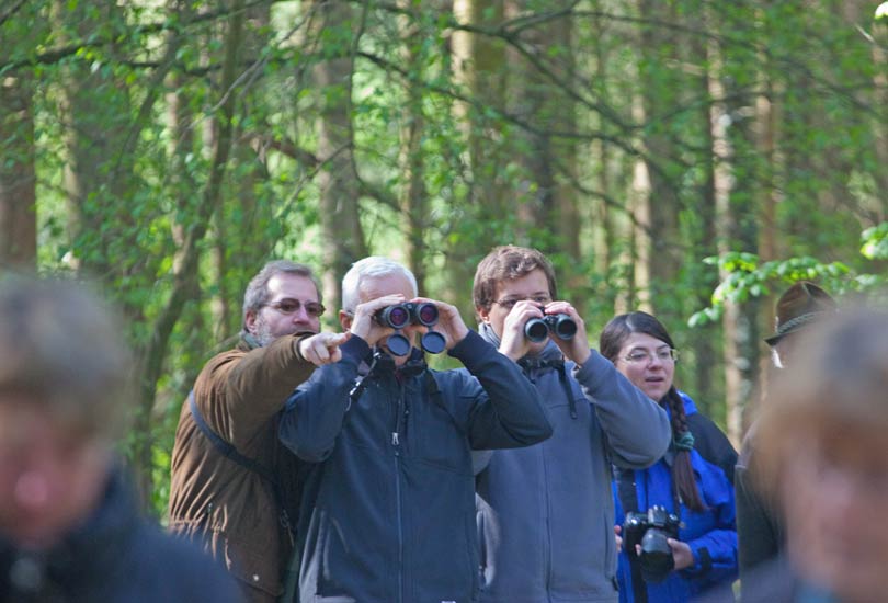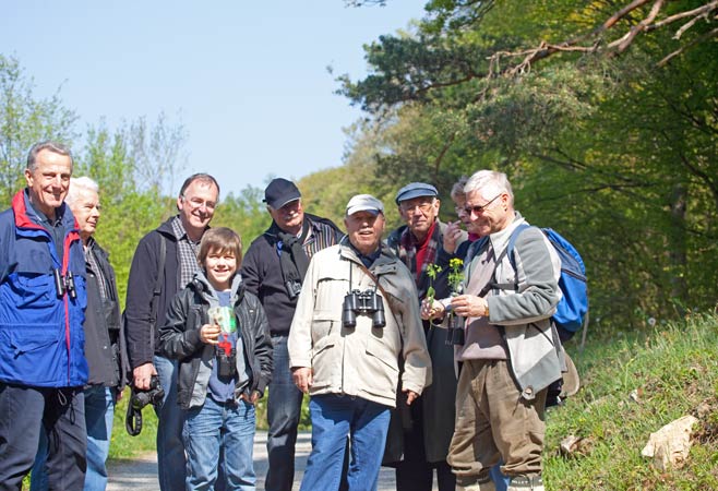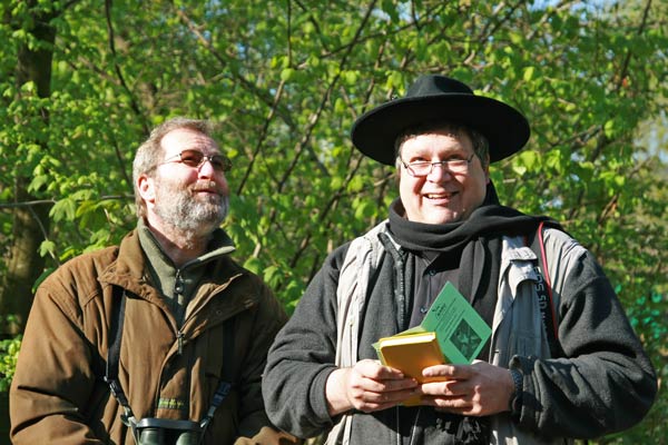 Jochen Völlm (rechts) hört hier den Gartenrotschwanz und einen Sperber