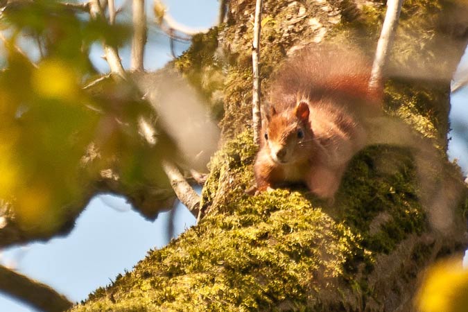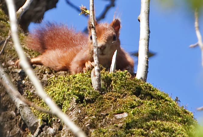 liegt flach auf einem besonnten bemoosten Ast ... mehr über unsere → Eichhörnchen im Glemstal |