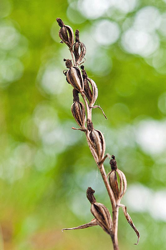 vorjähriger Samenstand der Orchidee weißes Waldvögelein (Cephalanthera damasonium) ... mehr über unsere → Orchideen im Glemstal |