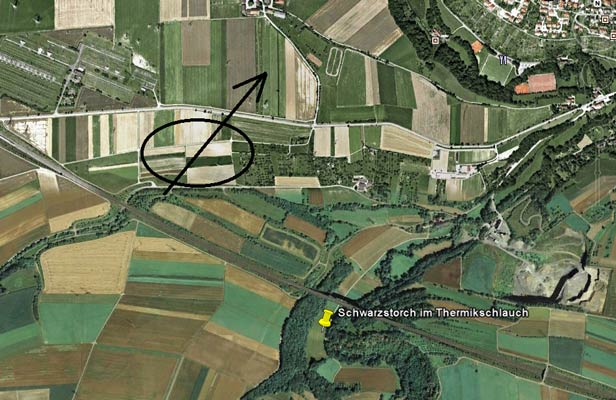 vorher in nur 600 m Entfernung einen Schwarzstorch im Flug