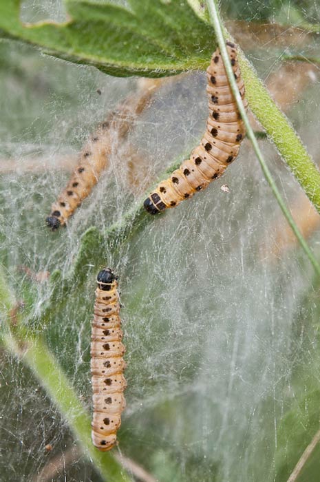 Raupen der Traubenkirschen-Gespinstmotte ...mehr über unsere → Raupen im Glemstal → Naturdenkmal Heimberg |