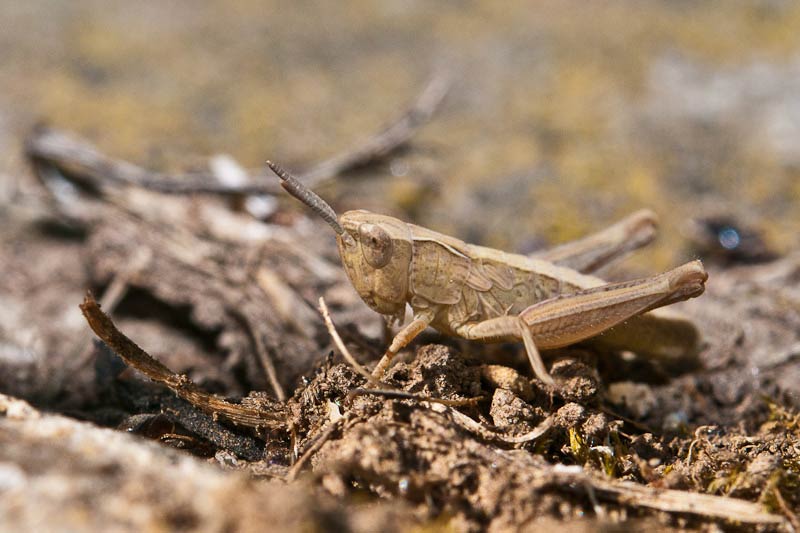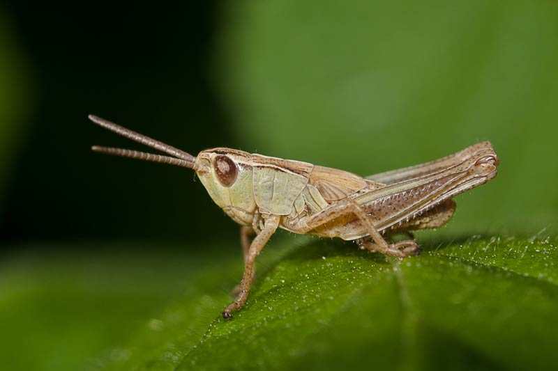 Kurzfühlerschrecke; Feldheuschrecke evtl. bunter Grashüpfer, juv. ...mehr über unsere → Kurzfühlerschrecken im Glemstal → Naturdenkmal Heimberg |