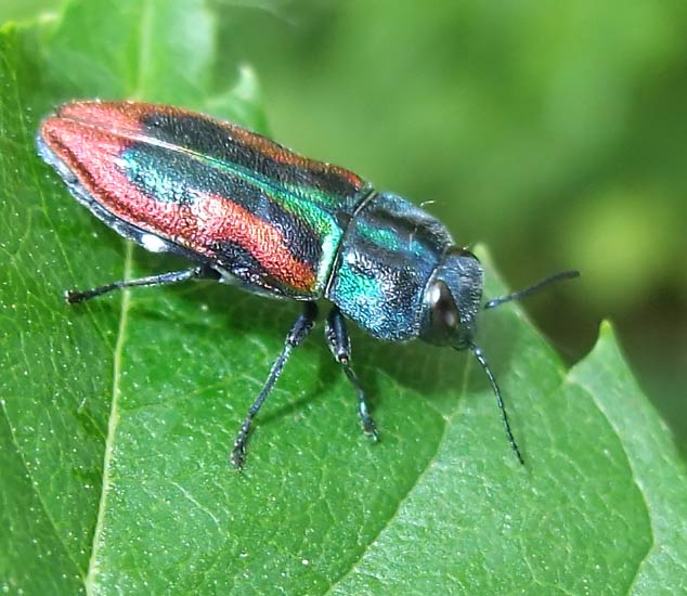 sehr bunter Käfer: Kirschprachtkäfer (Anthaxia candens) Fam. Prachtkäfer (Biprestinae) ...mehr über unsere → Käfer im Glemstal → Katharinenlinde in Schwieberd. |