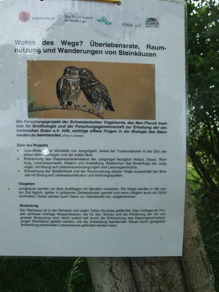 Schild über Steinkäuze ...mehr über unseren → Steinkauz im Glemstal → Gagerbach in Schwieberdingen |