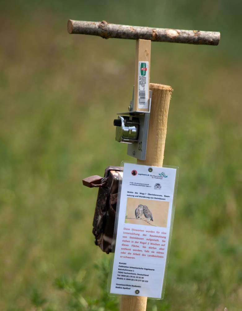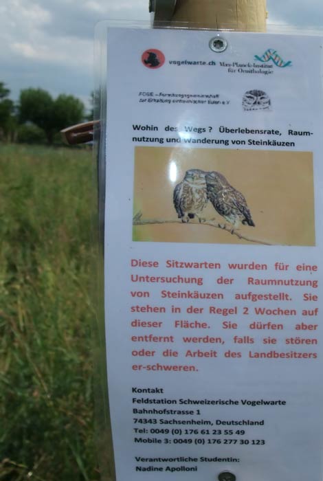 Schild an der Fotofalle für Steinkäuze ...mehr über unseren → Steinkauz im Glemstal → Gagerbach in Schwieberdingen |