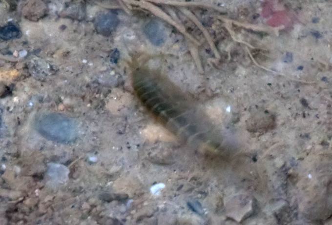 eine Art Assel im Wasser, vermutlich der Bachflohkrebs ...mehr über unsere → sonstigen Tiere im Glemstal → Feuchtgebiet beim Landesbrunnen |