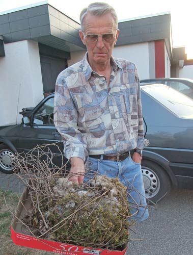 Günter Krämer vom NABU Schwieberdingen-Hemmingen zeigt einen Eichhörnchenkobel aus seinem Garten ...mehr über unsere → Eichhörnchen im Glemstal |