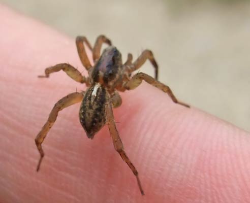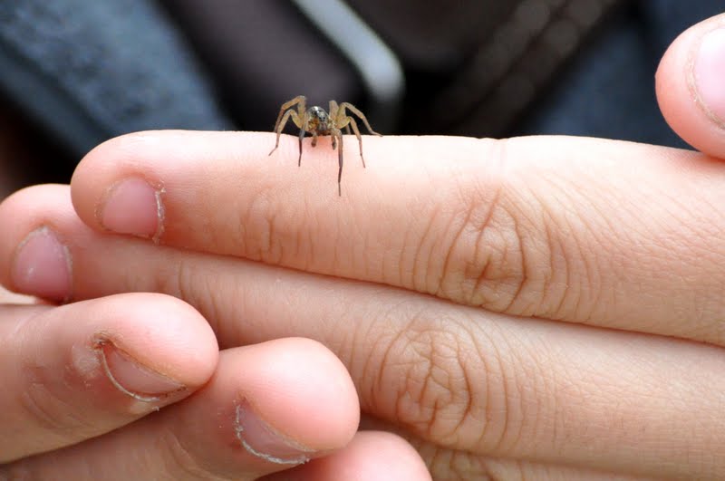 Naemi Cotrus zeigt eine Wolfsspinne (Pardosa sp.) ...mehr über unsere → Spinnen im Glemstal → das Gebiet Siegental |