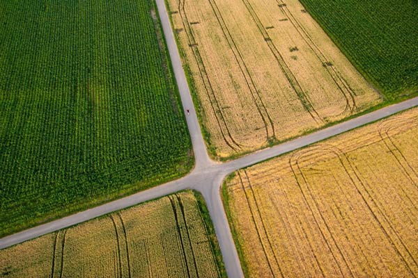 Fahrstreifen, die im Kornfeld zu erkennen sind sehr interessant"