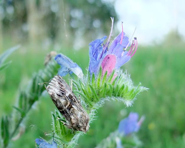 Natternkopf (Echium vulgare), ein Raublattgewächs mit unbestimmtem Falter am Heimberg ...mehr über unsere → Raublattgewächse im Glemstal → Falter im Glemstal → Naturdenkmal "Heimberg" |