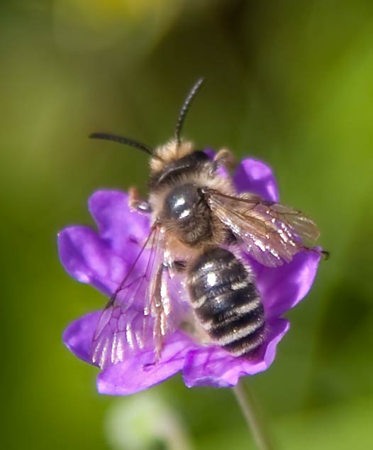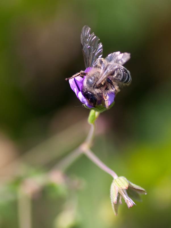 Sandbiene (Andrena flavipes) auf einem Storchschnabel (Berg-Storchschnabel?) ...mehr über unsere → Wildbienen im Glemstal → Storchschnabelgewächse im Glemstal → Naturdenkmal "Heimberg" |