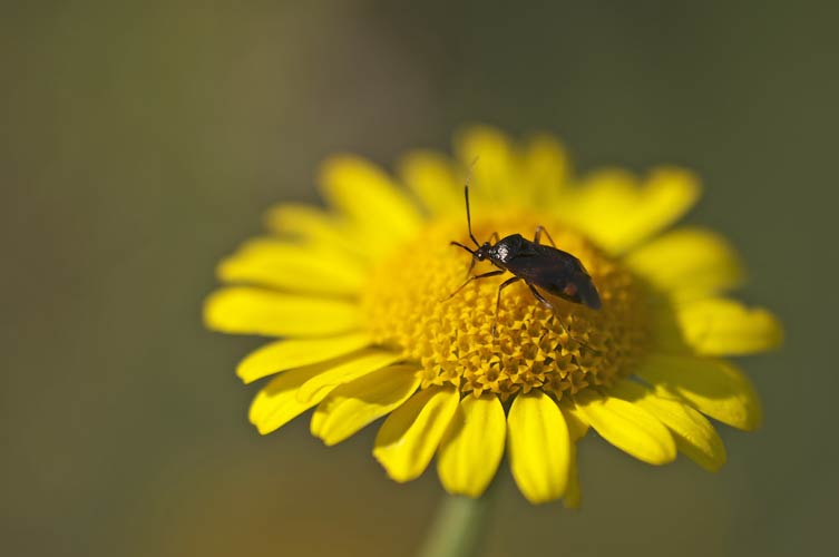 seltene Weichwanze: Gelbsaum-Zierwanze (Adelphocoris seticornis) auf gelbem Korbblütler (Färberkamille) am Heimberg ...mehr über unsere → Wanzen im Glemstal → Korbblütengewächse im Glemstal → Naturdenkmal "Heimberg" |