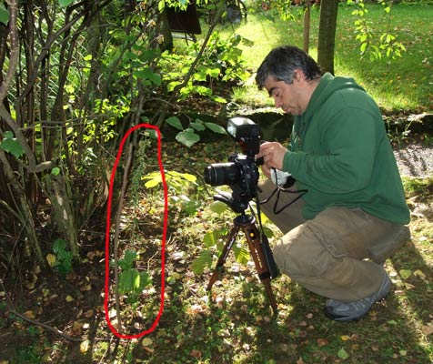 Das Foto von Manfred Herda. (Im Foto links sehen Sie das "making of" zu diesem Foto) ...mehr über unseren → Steinkauz im Glemstal → Gagerbach in Schwieberd. |