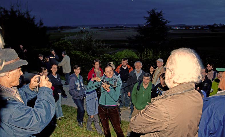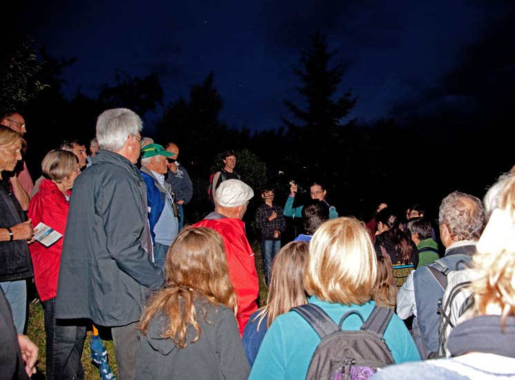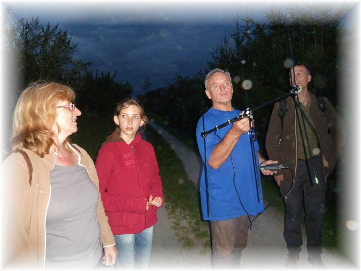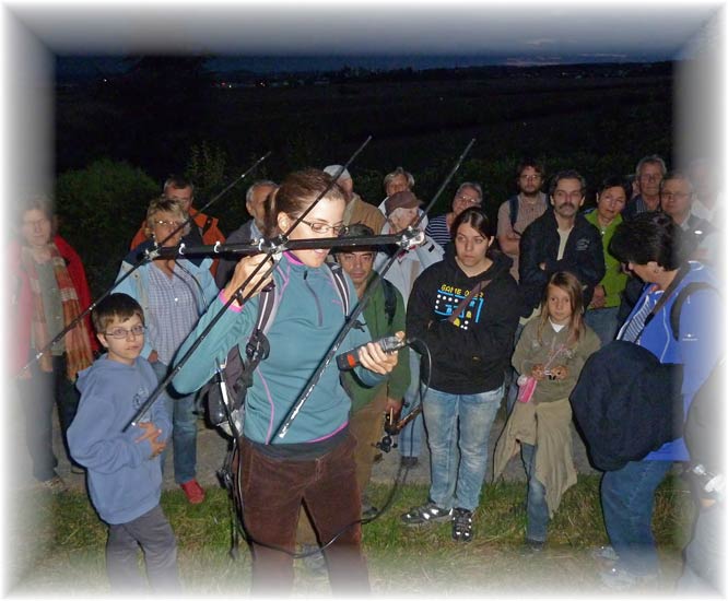 Nadine Apolloni von der Uni Bern hat viele Zuschauer beim Orten der Steinkäuze ...mehr über unseren → Steinkauz im Glemstal → Gagerbach in Schwieberd. |