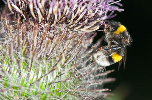 eine Erdhummel (Bombus terrestris) auf einer Distel ...mehr über unsere → Hummeln im Glemstal → Nippenburg in Schwieberdingen |