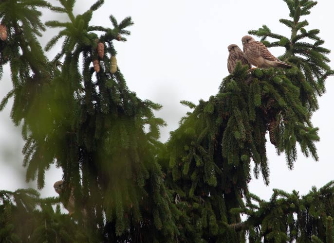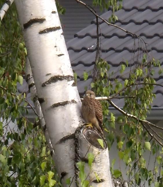 Mitte Mai sitzt auf der Birke, wo später die Turmfalken
