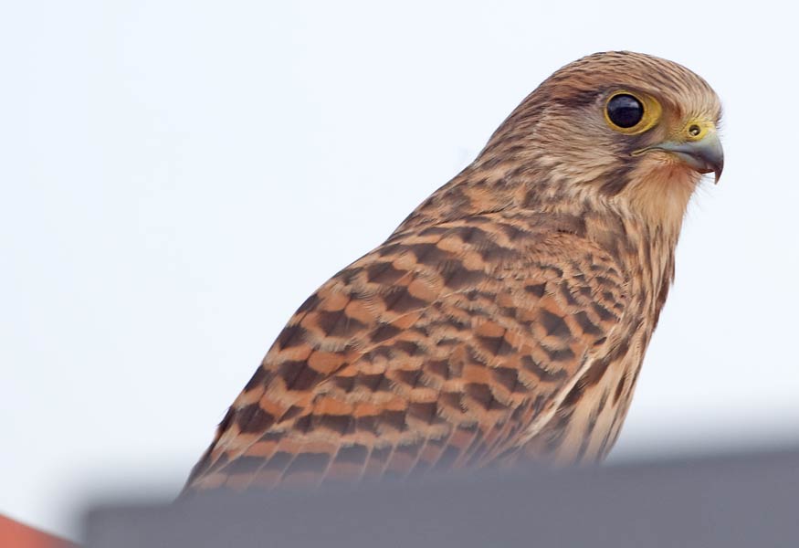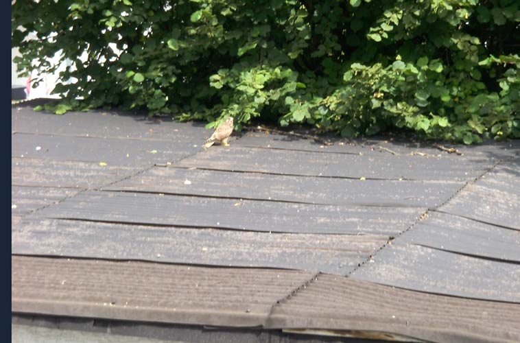 (Falco tinnunculus) auf dem Dach. Er hatte uns auf