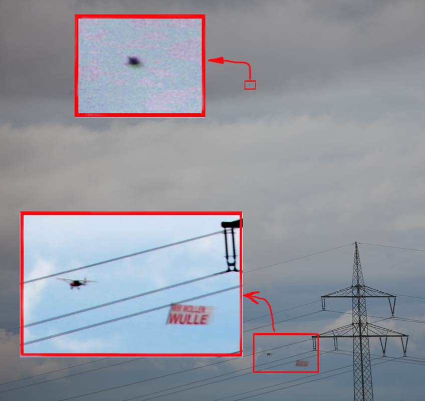 Kameraauflösung ärgert Vogelfotograf: Ein Brachvogel jenseits der Auflösungsgrenze meiner Kamera. Das Flugzeug zeigt noch Struktur. Beim Brachvogel sehe ich keine Struktur mehr auch bei dieser maximalen Bearbeitung |