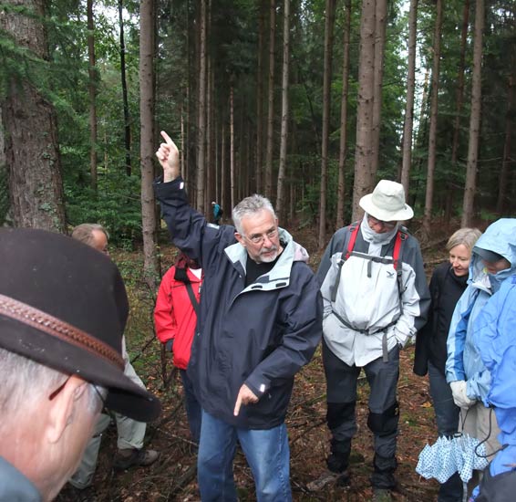 Hr. Seiler erklärt: "Nicht alle Lärchen im Sindelfinger Stadtwald sind