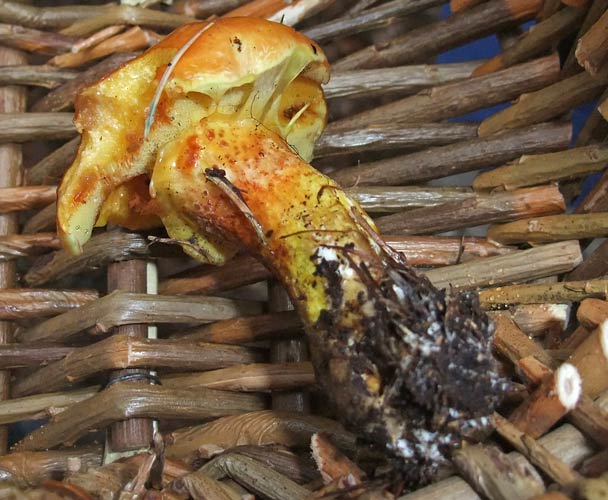 der Goldröhrling (Suillus grevillei) steht immer neben einer Lärche, denn er ist ein Mykorrhizapartner der Lärchen, er kommt in Mitteleuropa fast stets mit der Europäischen Lärche vor, sehr selten sind Funde unter anderen Lärchenarten |